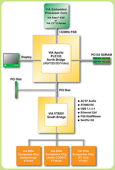- VT8601A North Bridge - Featuring integrated AGP 4X graphics - VIA VT8231 South Bridge