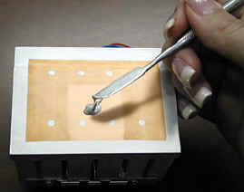 has been carefully spread over the top of the core using a single edge razor blade. A
